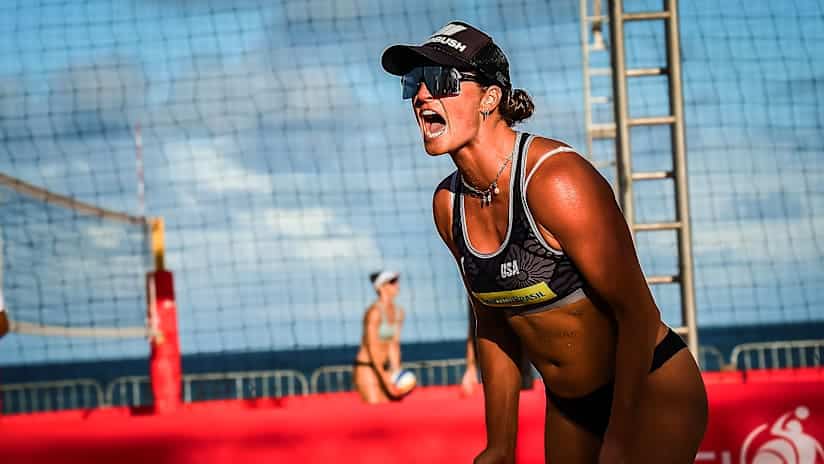 Người Mỹ đã ra mắt đội chính thức của họ chỉ vài giờ trước đó, vượt qua người Hungary Lilla Villám và Stefánia Kun trong một set ba set khác (20-22, 21-9, 16-14) ở vòng loại.