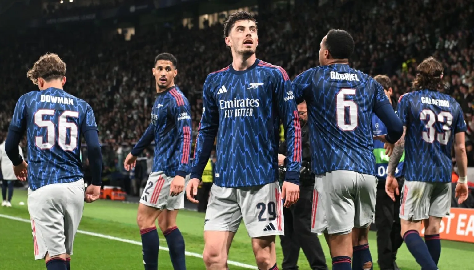 Khi trận đấu gần kết thúc, Raya thực hiện một pha cứu thua quan trọng khác, từ chối cú đánh đầu đúng chỗ của Geny Catamo. Tuy nhiên, chỉ còn những phút bù giờ, Havertz đã đột phá, tung cú sút chìm vào lưới để ấn định chiến thắng quan trọng trên sân khách.